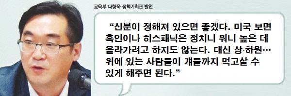 * 링크: [경향신문] 교육부 고위간부 “민중은 개・돼지··· 신분제 공고화해야”