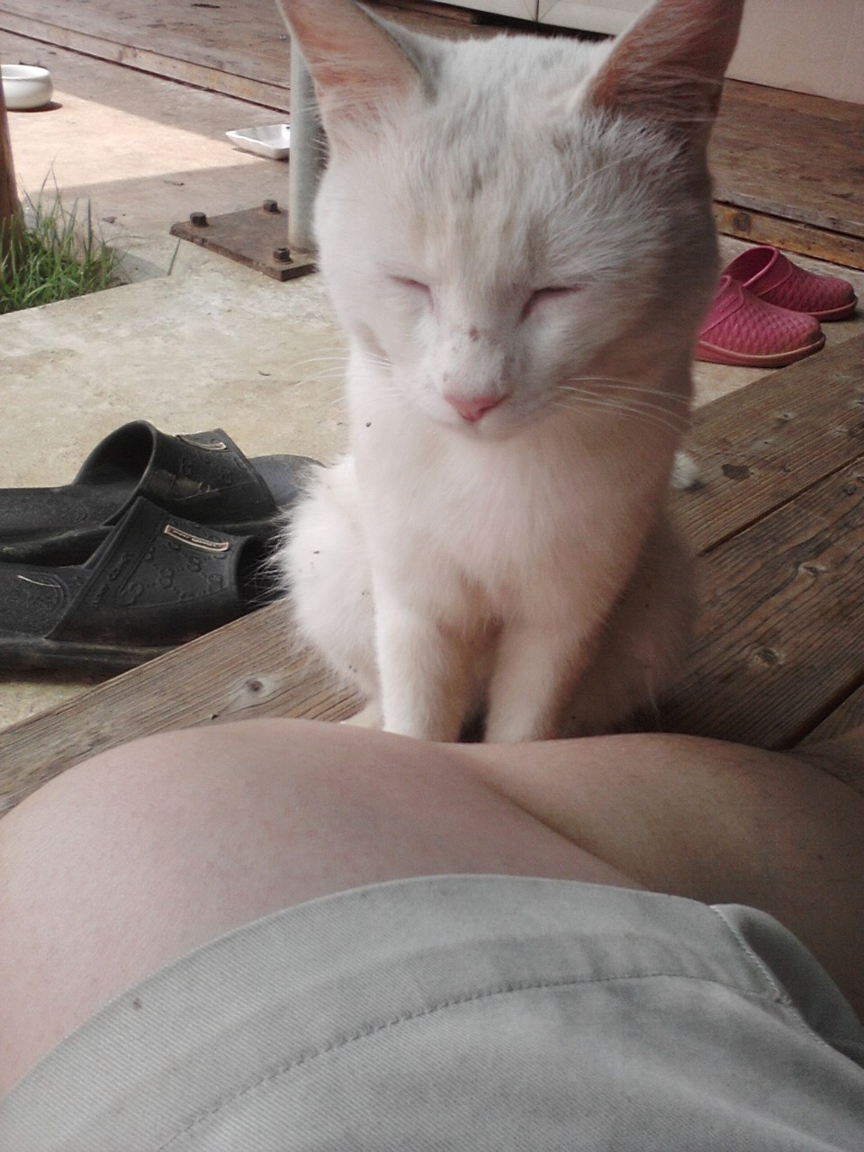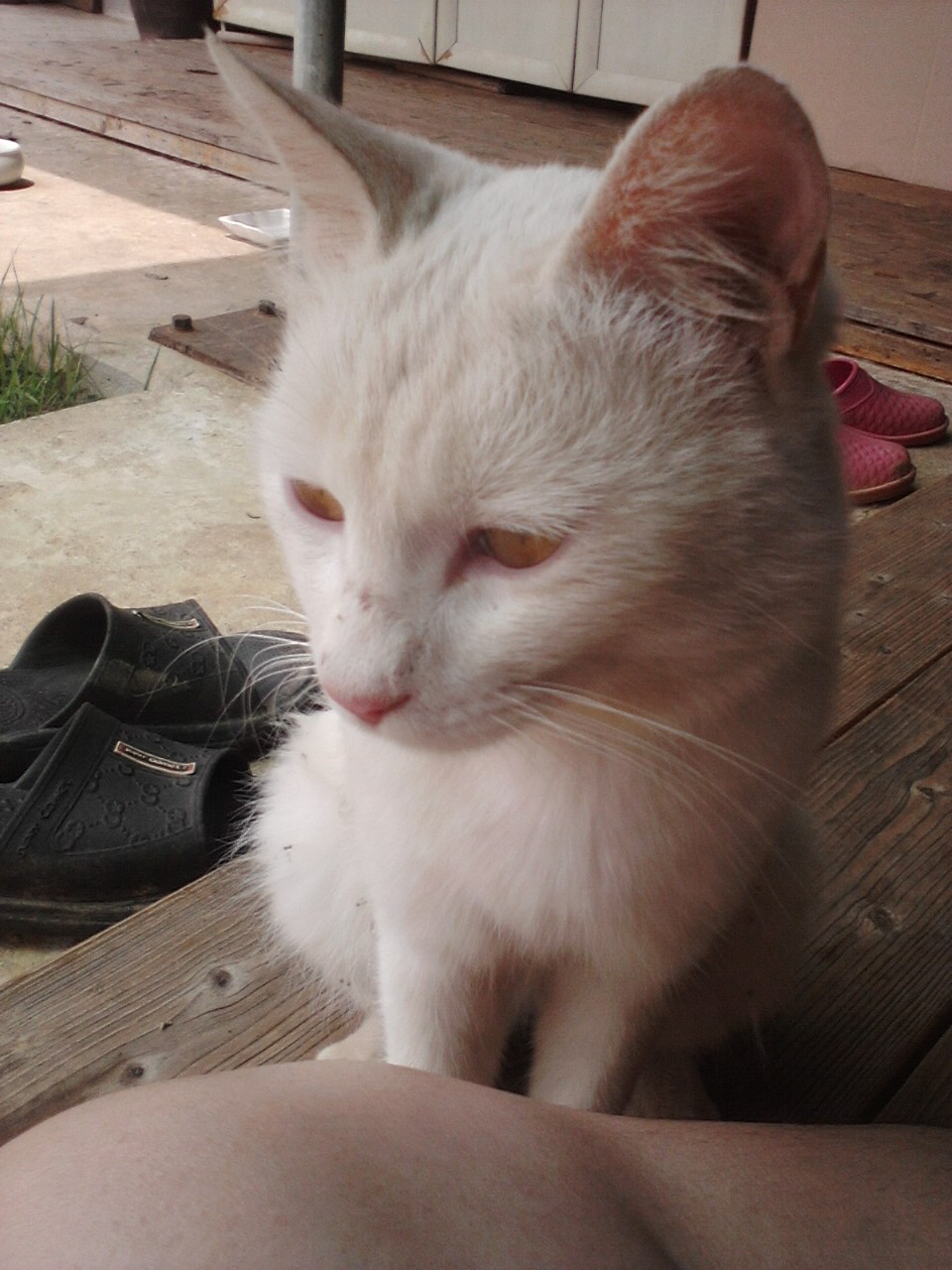내가 현관문 앞에 앉아있으니까 눈노란놈이 와서 내 옆에 앉았다. 지나가던 새끼는 눈노란놈 옆에 앉았다. 눈노란놈이 수컷이니까 젖 먹으려고 옆에 온 것은 아니었다.
