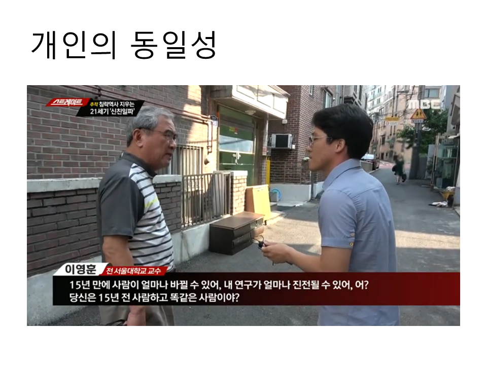 당신은 15년 전과 동일한 사람인가? 이것은 개인의 동일성에 관한 형이상학적 질문이다. 이영훈 교수 인터뷰 사진을 학부 <철학개론> 수업이나 <형이상학> 수업 때 활용할 수 있겠다.
